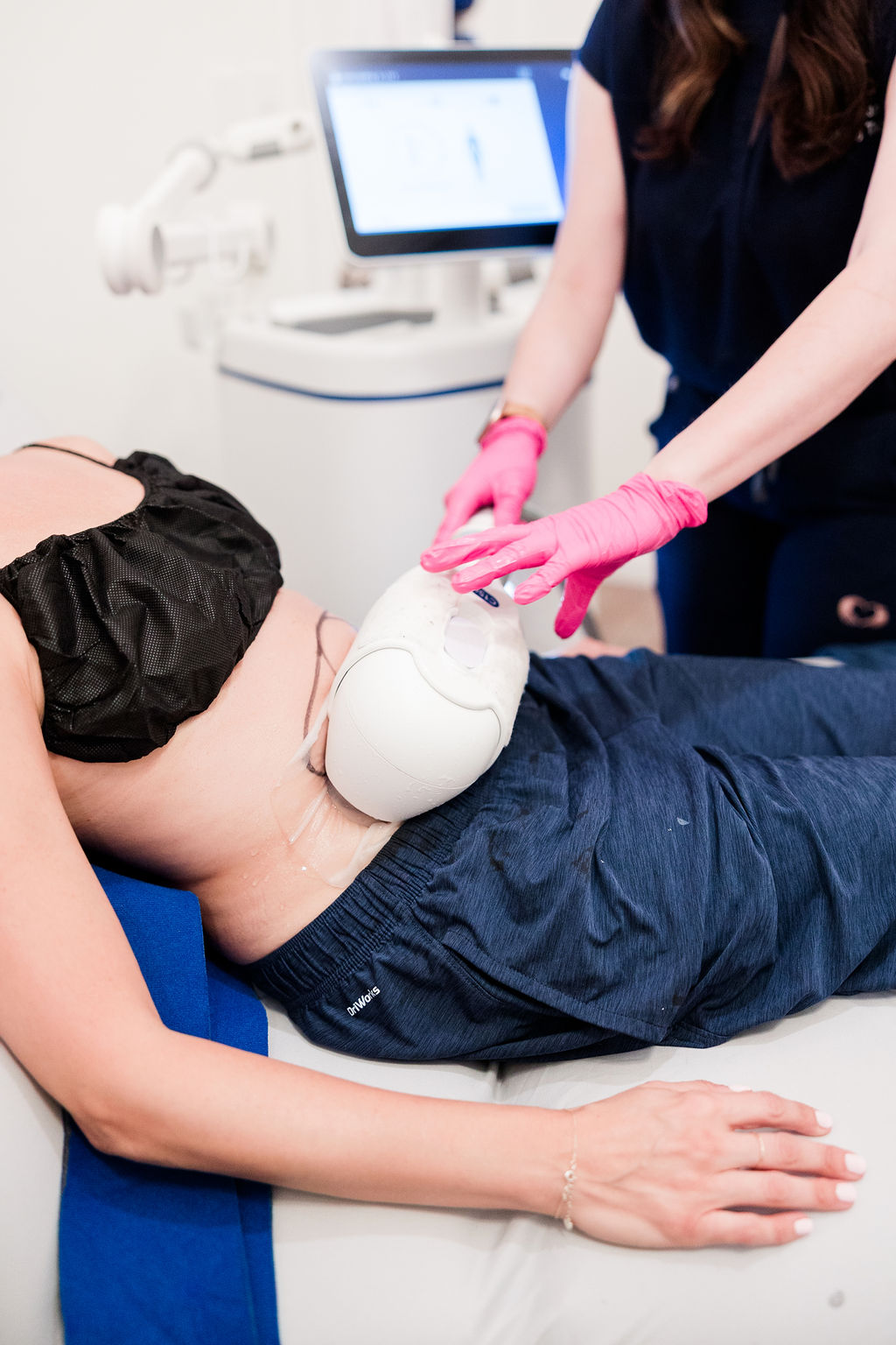 CoolSculpting Elite treatments are performed in a comfortable, in-clinic setting with no anesthesia or downtime required. During treatment, controlled cooling is applied to targeted areas to freeze fat cells while you relax.